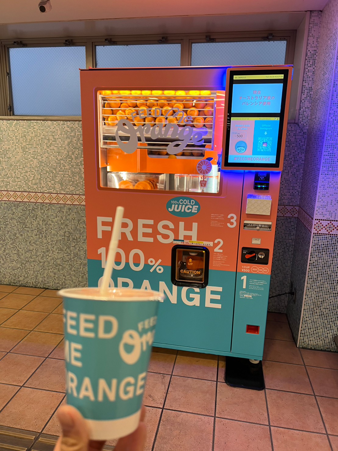 搾りたてのオレンジジュースが飲める自動販売機を遂に発見
