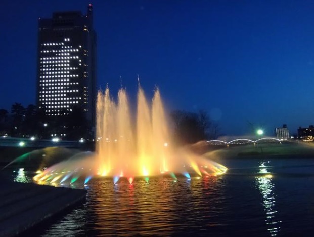 前橋市 前橋公園 噴水ライトアップ
