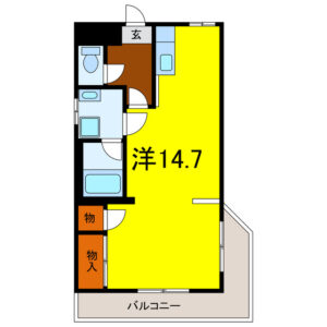 広々とした居室はなんと14.7帖、L字型のバルコニーが特徴の