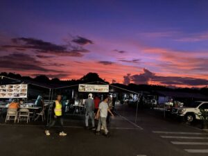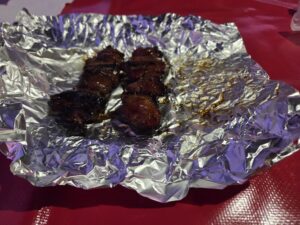 市場には新鮮な野菜や南国らしい果物が並び、ローカルフードの屋台もたくさん出ていてとても賑やか。私たちは屋台でポークの串焼きを買い、その場で朝食にしました。香ばしく焼かれたお肉がとても美味しく、旅のスタートにぴったりのローカル体験になりました。