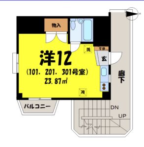 • Large 12-tatami studio layout (23.87㎡ / 257 sq ft)